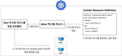 • 컨트롤러는 Watch API를 통해 새로운 CR이 생성되었다는 것을 갑지하고, CR이 원하는 바람직한 상태가 되도록 특정 동작 수행